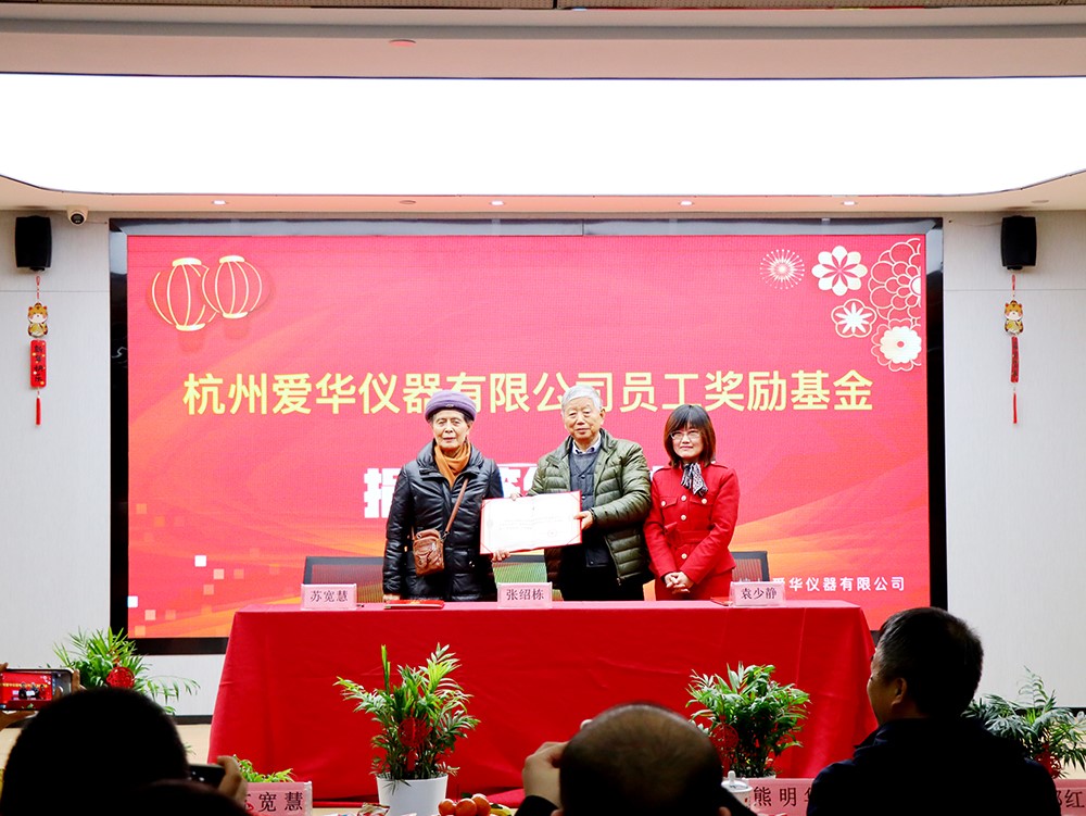 会议上公司创始人张绍栋、苏宽慧夫妇捐资1000万设立“杭州3044永利集团仪器有限公司员工奖励基金”,该笔基金将交由公司工会运作和管理,基金收益用于奖励3044永利集团仪器及控股子公司的杰出员工。